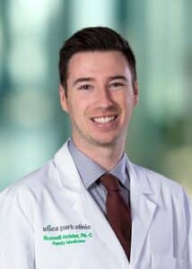 Russell’s love for science, the human body and helping others is what inspired him to pursue a career in medicine. “I love seeing people of all ages and helping them through the many different stages of life and health, from young kids to elderly,” he said. “I enjoy forming relationships with patients and families and building that relationship and trust over many years to help benefit the health of the patient.”