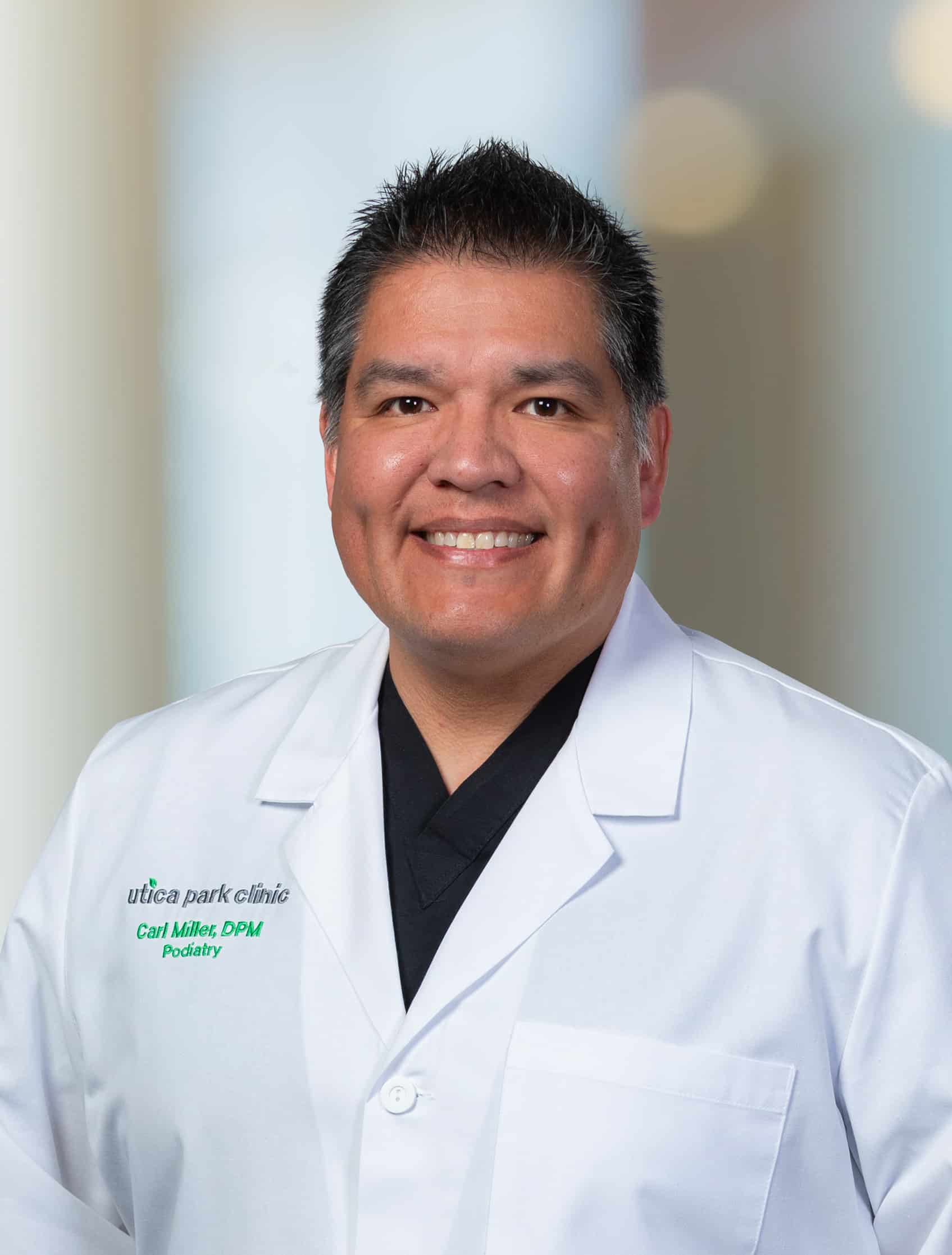 Carl Miller Jr., D.P.M. (doctor of podiatric medicine), specializes in podiatry at Utica Park Clinic. His professional areas of interest include educating patients on the effects of diabetes and neuropathy, integrating surgical knowledge to help resolve chronic wounds and preventing the start and recurrence of wounds.