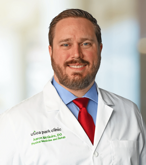 Aaron McGuire, D.O., has been in health care since 2012. He specializes in physical medicine and rehabilitation. “My favorite aspects of medicine involve the musculoskeletal system,” he said. “Physical medicine and rehabilitation encompasses a broad range of these topics and emphasizes how you interact with your environment. As your doctor, I will spend time with you during a dynamic period of your recovery, getting to know you and assisting you through the rehabilitation process.”