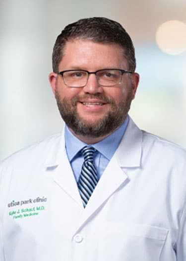 Kyle Schauf, M.D., FAAFP, specializes in family medicine at Utica Park Clinic. His professional areas of interest include diabetes, hypertension, lipid management, heart disease, skin procedures and preventive medicine.