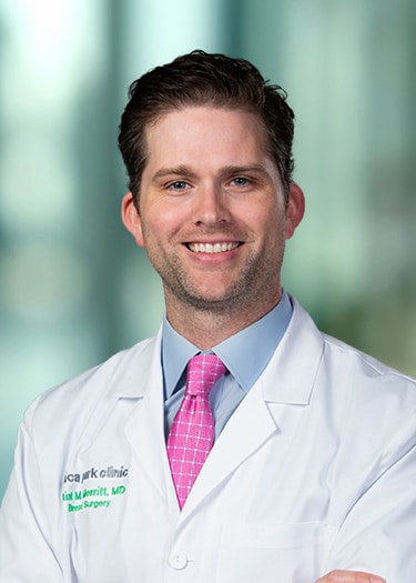Clint Merritt, M.D., FACS, specializes in breast surgical oncology. While his primary focus as a breast surgeon is to treat patients with breast cancer, he also treats those with benign breast problems like a cyst, abscess, breast pain, nipple discharge and those in need of genetic counseling and testing.