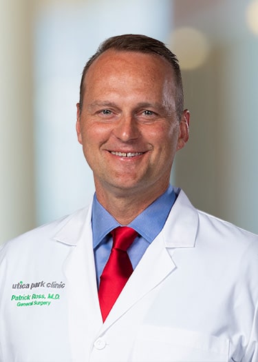 Patrick Ross, D.O., specializes in general surgery at Utica Park Clinic at Hillcrest Medical Center. His professional areas of interest include robotic and advanced laparoscopic surgery, surgical oncology, colorectal surgery and endocrine surgery.