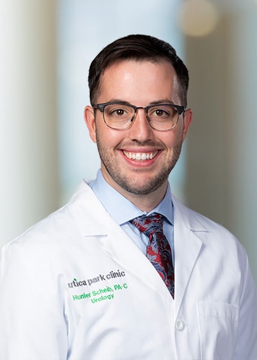 Hunter Scheib, PA-C, specializes in urology. He works hard to establish a strong foundation of communication with his patients, allowing them the opportunity to voice their concerns in a safe and understanding environment.