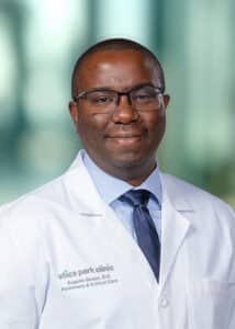 Eugene Quaye, D.O., specializes in pulmonary critical care and practices at Utica Park Clinic on the campus of Hillcrest Medical Center. โMy ultimate goal is to come alongside my patients to help them achieve their health goals whatever that may be. We both have a part to play, and they will never walk alone in their health journey,โ said Dr. Quaye.