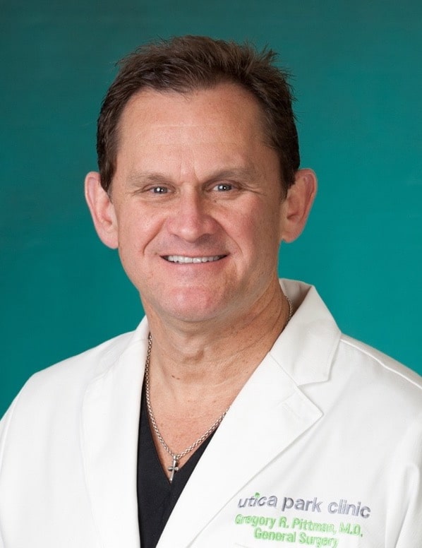 Gregory Pittman, M.D., FACS, has been practicing general surgery in Tulsa since 1991. He was born and raised in the Tulsa area and is married with three children.