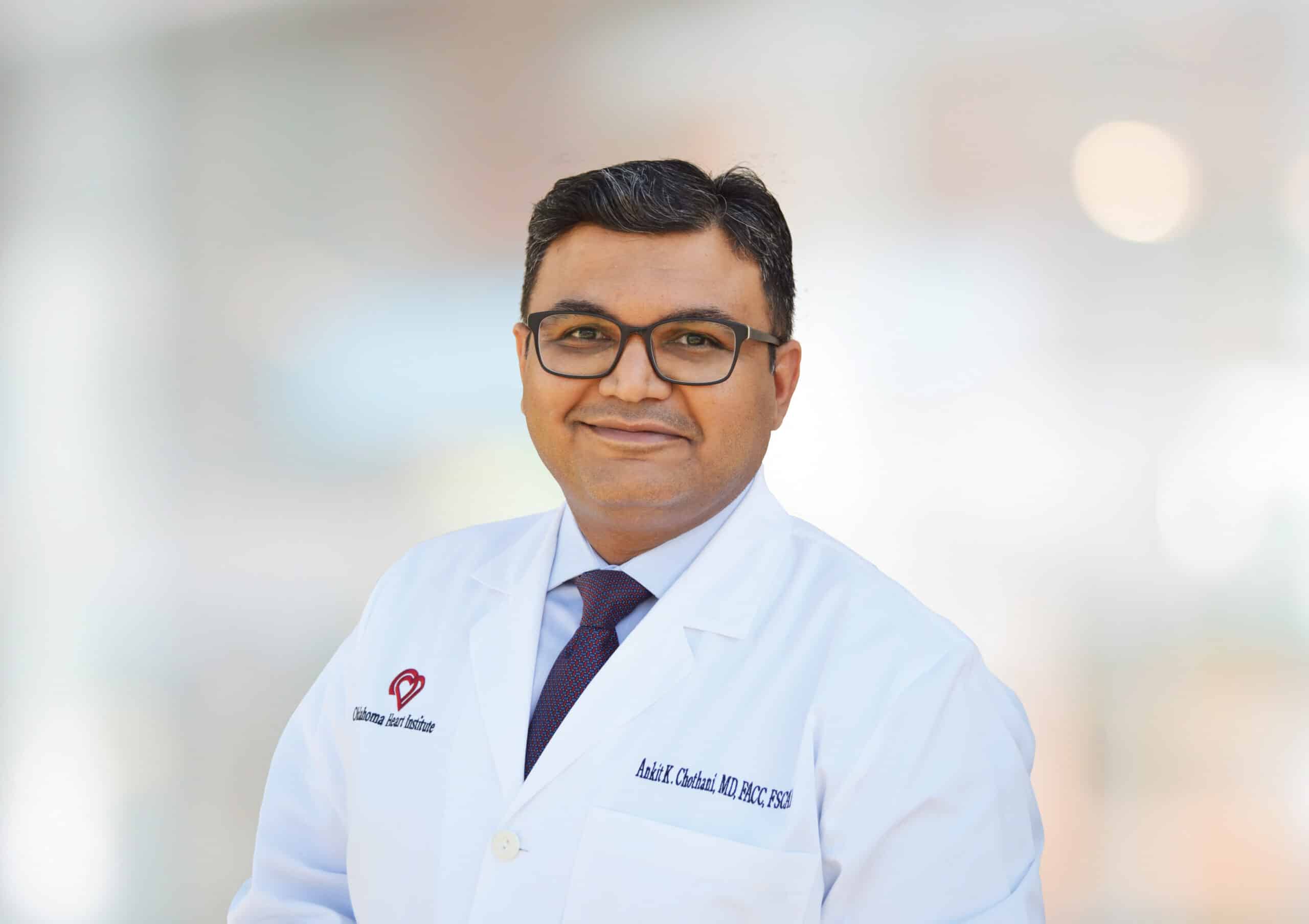 Ankit K. Chothani, M.D., FACC, is a specialist in interventional and peripheral endovascular cardiology, including cardiac catheterization, coronary angioplasty, stents, atherectomy, laser, intravascular ultrasound imaging, direct PTCA/stents for acute myocardial infarction and peripheral angioplasty and stenting. He is medical director of the cardiac catheterization and interventional labs at Hillcrest South.